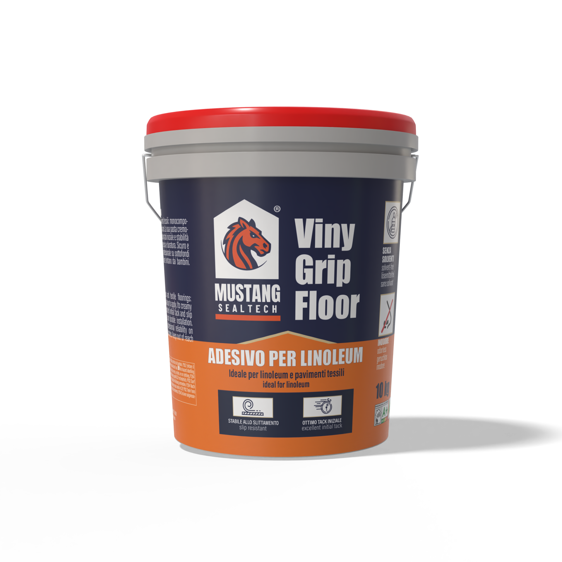 VinyGrip Floor - Resistente Umidità - Adesivo ideale per linoleum e pavimenti tessili: monocomponente, pronto all'uso e facile da applicare. La sua pasta cremosa assicura lungo tempo aperto, ottimo tack iniziale e stabilità allo slittamento, garantendo posa precisa e duratura. Sicuro e privo di solventi, offre affidabilità professionale su sottofondi assorbenti e stabili all'umidità. Tenere lontano dai bambini.