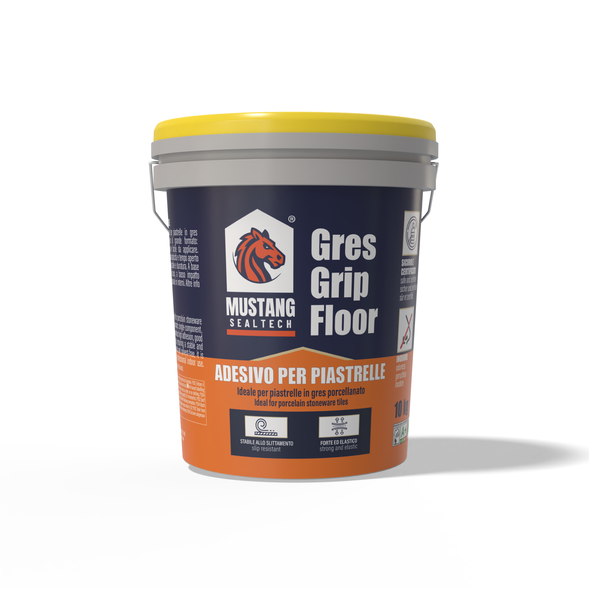 GresGrip Floor - Piastrelle & Gres - Adesivo ideale per piastrelle in gres porcellanato e ceramiche, anche di grande formato: monocomponente, pronto all'uso e facile da applicare. Garantisce adesione elevata, buona elasticità e tempo aperto controllato, assicurando una posa stabile e duratura. A base acquosa e privo di solventi, è sicuro, a basso impatto ambientale e adatto all'uso professionale in interni.