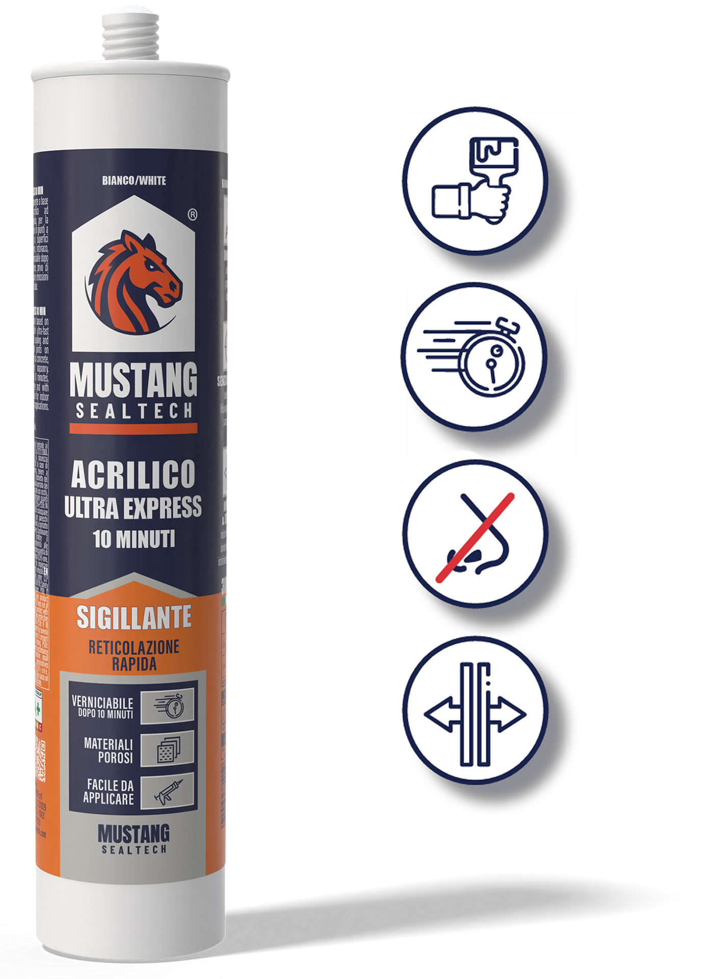 Acrilico Ultra Express 10 Minuti sigillante monocomponente a base di emulsione acrilica ad essiccazione ultrarapida, specifico per la sigillatura e stuccatura di giunti a basso movimento su superfici porose come cemento, intonaco, legno e muratura. Verniciabile dopo soli 10 minuti, è inodore, privo di solventi e a bassissime emissioni VOC. Ideale per applicazioni interne ed esterne protette