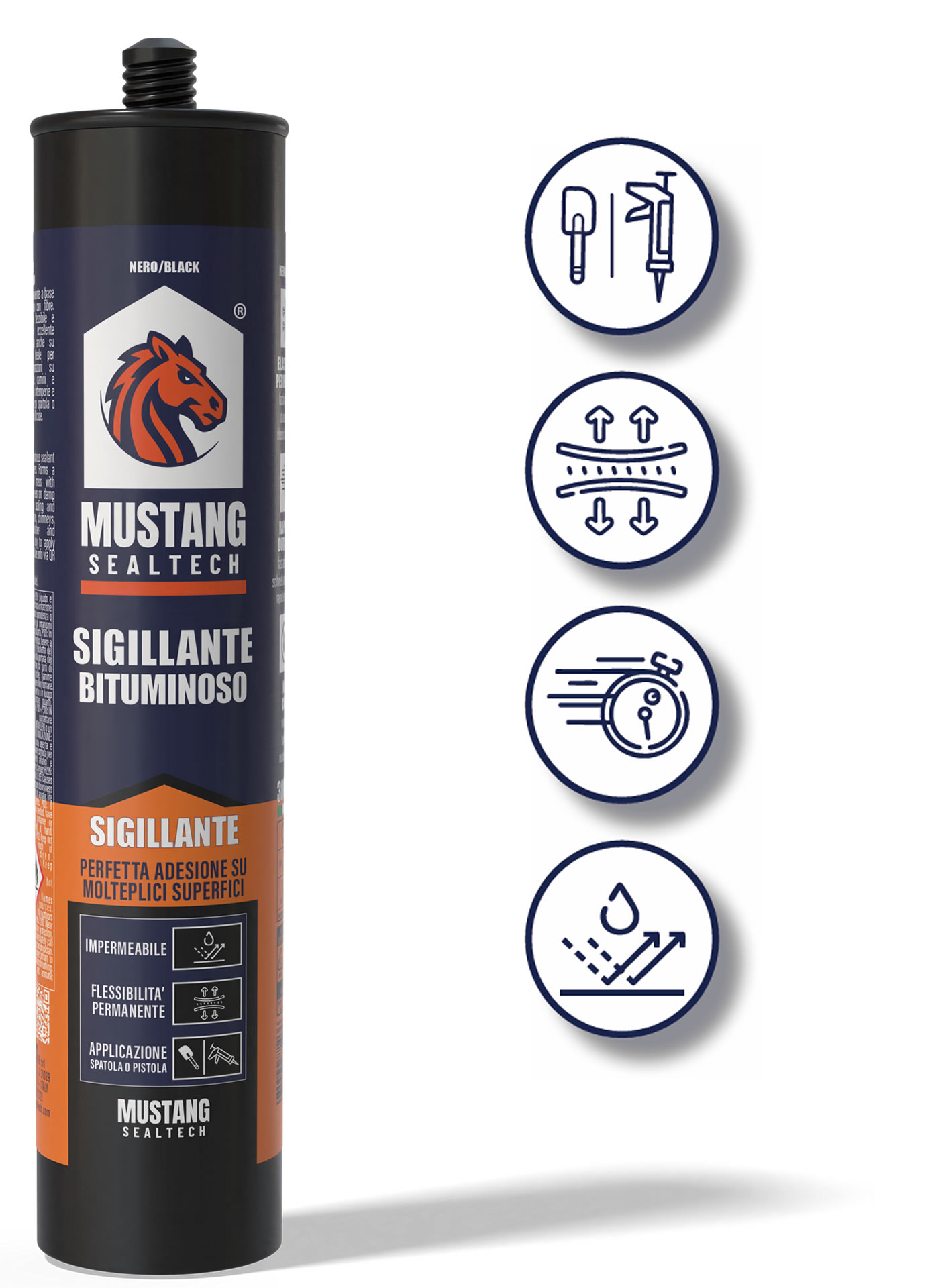 Build - BITUMINOSO Sigillante plasto-elastico monocomponente a base bituminosa rinforzata con fibre. Forma una massa flessibile e impermeabile con eccellente adesione immediata anche su superfici umide. Ideale per sigillature e riparazioni su coperture, grondaie, camini e condotte. Resistente a intemperie e umidità, applicabile con spatola o pistola.